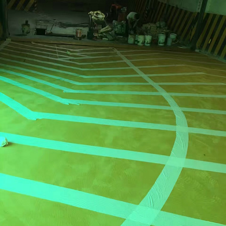 1. 鋪設底漆:將環(huán)氧樹脂滲透底漆A組份和B組份按一定比例(1:1)調配均勻滾涂做底層,封閉原素地表面之毛細孔,增強素地與漆層的接著力。 2. 刮涂環(huán)氧砂漿中間層:將環(huán)氧樹脂中涂地坪漆A組份和B組份按一定比例(4:1)調合攪勻,加入40-80目之石英砂調成環(huán)氧石英砂漿,刮涂環(huán)氧砂漿中間層。 3. 做止滑層:將A組份和B組份按一定比例(4:1)調合攪勻,用專用滾筒均勻滾涂一遍,均勻撒布止滑石英砂,待干后掃去多余之石英砂。 4. 彩色面漆滾涂:將A組份和B組份按一定比例(4:1)調合攪勻,用滾筒或噴涂均勻滾涂一遍。 地面鋪設,減少了制作工序與時間,并能夠提高產(chǎn)品質量,減少施工時間。